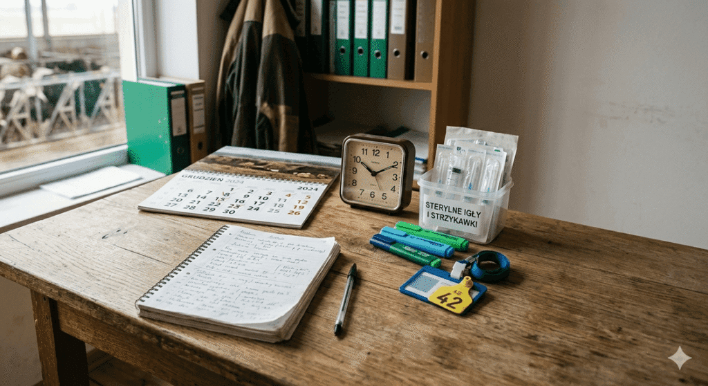 I tutaj pojawia się temat, o którym rzadko mówimy wprost, bo brzmi zbyt przyziemnie: dokumentacja. Jeśli protokół jest rozpisany na kartce na drzwiach mleczarni, a po tygodniu karta jest mokra albo znika, to problem nie jest w hormonach, tylko w systemie pracy. Artykuł branżowy o realiach terenu dobrze oddaje ten ciężar papierów: zaraz po zabiegu trzeba uzupełnić zaświadczenia i dane, a ręczne przepisywanie do rejestrów bywa uciążliwe i pochłania czas.